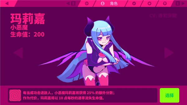 每当小恶魔玛莉嘉橙光击中敌人会获得25%的额外分数,作为代价玛莉嘉将以10点每秒速率流失生命。