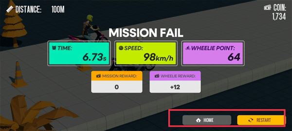 6、完成比赛后就会显示你赛车所用的时间、速度等,可以点击“HOME”返回主页,也可以点击“RESTART”重新再来一次。