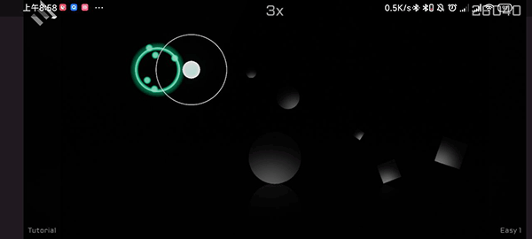 2、首先就是内部是蓝色球形的这个音符了,这个音符是需要外环的白圈抵达这个蓝色球形的边缘才可以进行点击消除的,提前点击是无法消除的。