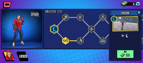 1、用你快速飞行的蜘蛛攻击行动不可预测,击败对手并获得下一个超级英雄级别的经验。