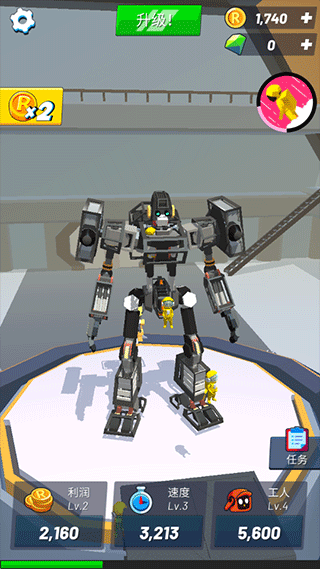 游戏拥有很多不同类型的刺激挑战模式,你可以招募工人来帮助你制作机甲,而且每一个环节都不能有失误,同时也要保证工人的数量,这样才能够尽快的制作出完美的机甲,而制作完成的机甲还可以进行升级,只需要搭配更加高级的配件就可以让自己的机甲成为战斗之王。