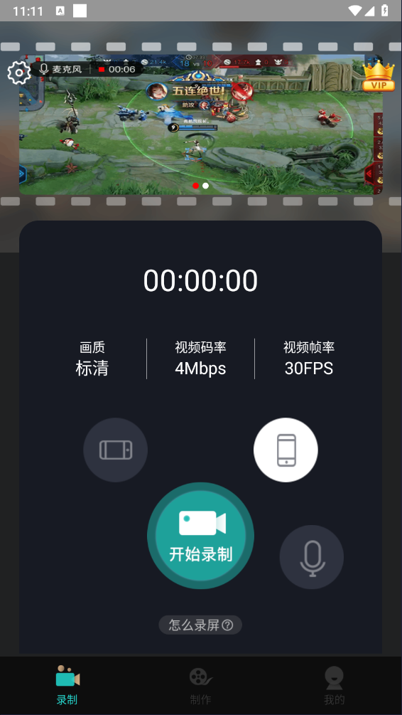授权后,重新点击开始录屏,倒计时5s后会自动开始录屏,您只要切换到需要录制的页面或游戏界面即可 (倒计时秒数可在设置里修改)