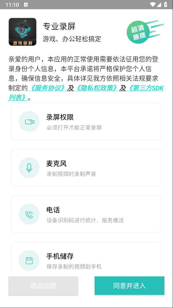 1、进入游戏录屏助手手机版后,点击披【同意并进入】