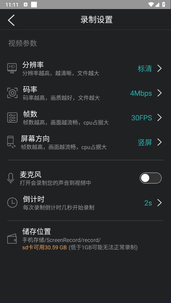 屏幕录制分辨率、帧率、码率自定义设置
