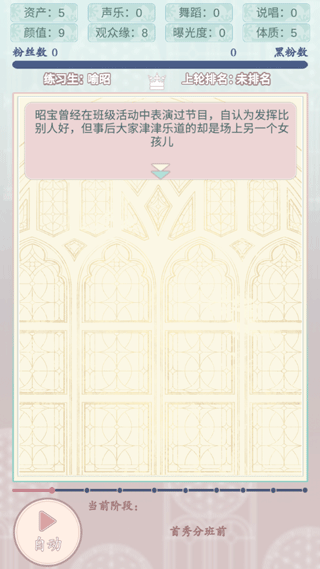 重生顶流练习生官方版是一款文字模拟偶像养成游戏,游戏的特别之处在于游戏全程采用文字来进行游戏进程,在游戏里玩家将成为一个想要出道的联系生,在游戏里会有各种事件来让你选择,而选择就代表了你在这个事件中能得到的东西,玩家在每一个事件中,都需要仔细考虑,选择会带来的影响。
