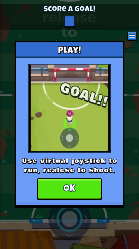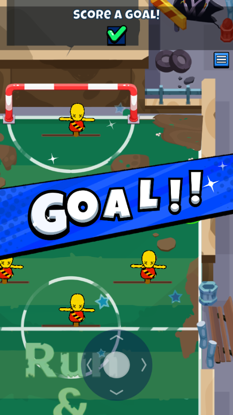 1、在本站下载该游戏进入,刚开时的一关特别简单,跟着新手教程来,只需要你使用虚拟摇杆移动人物将球射进栏即可闯关成功。