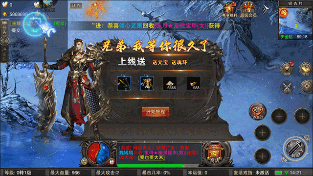 2、丰富金币超多元宝打造了最轻松掌上传奇冒险体验,轻松获取顶级神装,每位玩家都能感受畅快冒险快感