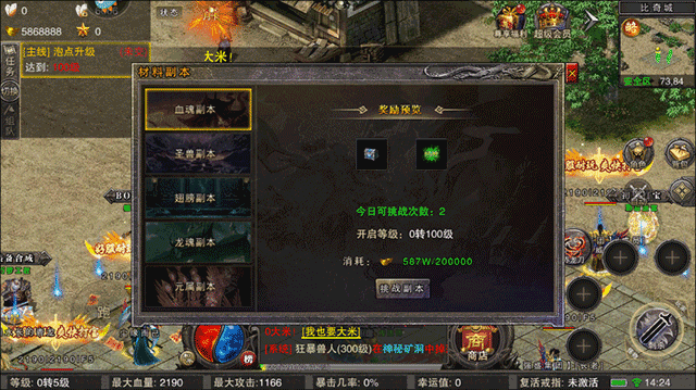 7、在野外,玩家可以通过找到并点击“副本”的功能选项进入副本挑战;
