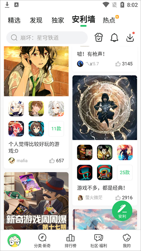 同时好游好爆app还是一个集合了众多游戏界大神的游戏社区,里面有很多的热门游戏的攻略玩法会经常更新,帮助玩家们,特别是游戏小白们更好地进入自己喜欢的游戏中进行游玩。应用中的安利墙是玩家用户们发现全网最新热门游戏的另一种特别途径,它能够帮助玩家们发现全网评论最火爆的游戏,并且支持玩家们自己上传游戏评价与千万玩家共同分享交流游戏经验。另外平台还推出了很多激励措施,帮助玩家们共同维护社区,这些措施中包括平台提供海量的游戏福利,有需要的玩家用户可以在本站下载使用。