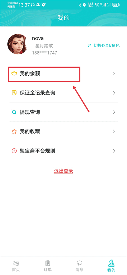 2、在我的余额界面中可以选择提现余额和订单提现,选择好后点击提现