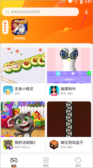 4、通过菜单栏可以找到许多的游戏种类,根据游戏的分类情况来获取好玩的游戏。