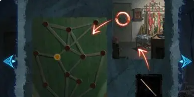 17、使用沾有红色油彩的化妆笔,在门上的脸谱上完成一笔画,打开通向仓库的门。