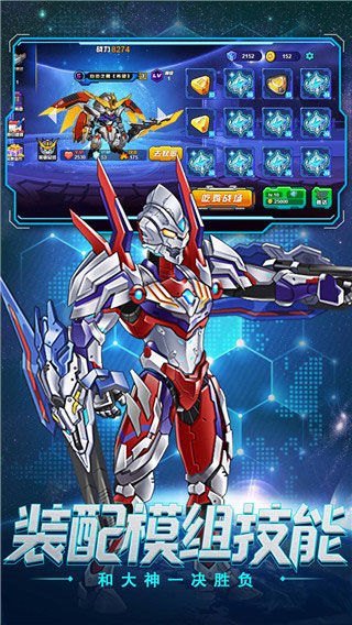 1、每个机甲战士都有不同的属性,选择自己钟意的战甲,方便你用心培养和改造。