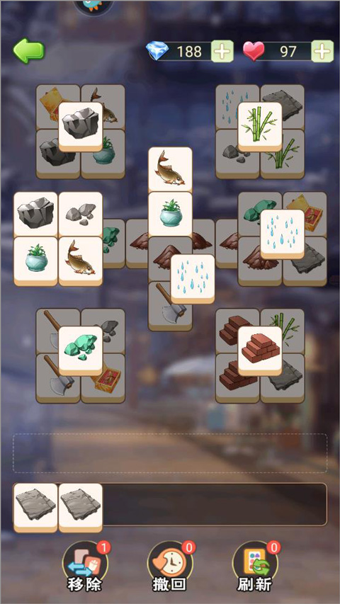 4、只需要点击三个相同的物品即可消除,进入下一关和剧情。