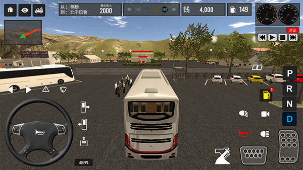 1、进入游戏后,点击下方的买解锁一辆公交车、开始游戏,屏幕左边的方向盘控制方向,右下角分别为“手刹”“刹车”和“油门”,右上角是仪表盘和油量还有金钱,最后挂“d”挡就可以开动你的公交车了