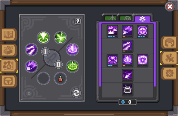 在元气骑士新作游戏中玩家可以选择不同的职业,打败扑面而来的小怪,提升角色等级并获取海量装备,搭配不同的技能,挑选心仪的装备组合,每个玩家都能拥有属于自己的强力流派。在游戏操作上,元气骑士新作依然是摇杆操作,但与前作不同的是,本作将血条和蓝条以经典的圆形,和各种被动、Buff一起放在了屏幕的左上方,而在攻击和释放技能上,与某些rpg游戏恨不得把整个屏幕塞满不同,凉屋在游戏上采用了翻页的设计,玩家只需滑动,就可以灵活调动使用最多九个技能。