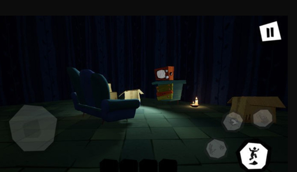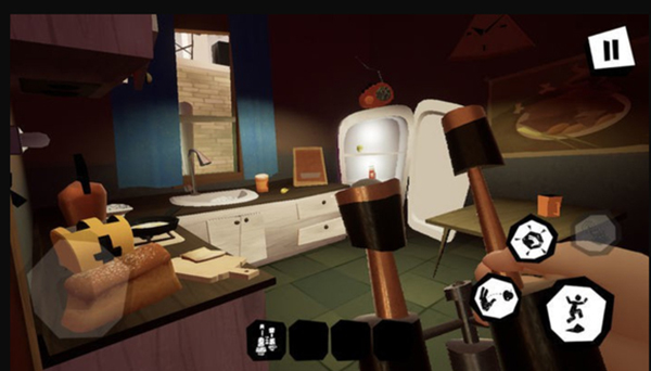2、游戏采用了第一人称视角,所以整体代入感很强,尤其是刚开始被大叔发现的时候,主人公挥舞着双手无所适从,而邻居却直直的冲向你,画面越来越黑,那张大脸越来越近最后消失,玩到后面章节其实你也可以和邻居过两招挣扎一下甚至逃走的,