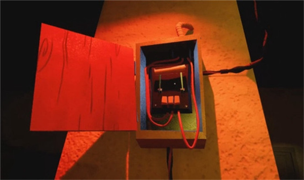 8、当然也可以放在电箱下面,踩上去关掉屋里的电源,当邻居来修理电源的时候,我们就能偷偷摸进屋内去找桌上的钥匙开启仓库大门了,