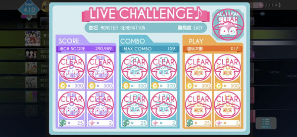 每首歌曲都是4种难易度,每种难度都有对应的通关奖励。