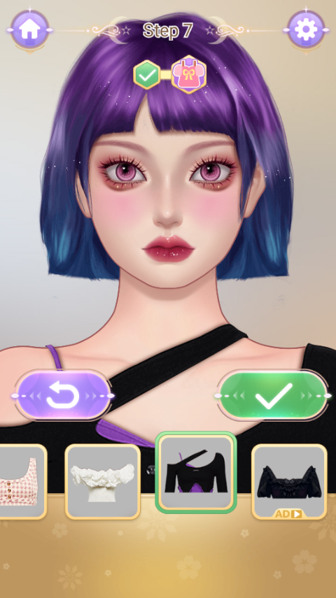 3、超多造型选择:游戏精心准备了多重妆容和服饰搭配,设计了萌妹、御姐、甜酷女孩等多种独家的造型,尽情发挥你的创意想象。