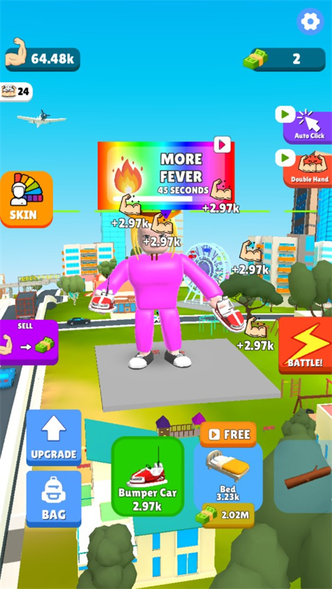 肌肉英雄是一款趣味十足的io竞技类游戏,又叫肌肉甜心,游戏采用简单容易上手的3D点击玩法,玩家只需通过不断的点击屏幕,让角色从最开始的小重量开始,逐渐增加肌肉的强度,锻炼到一定程度后就可以卖掉你获得的肌肉,你都会获得一定数量的虚拟货币,可以用来购买新的物品和道具。