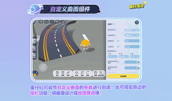 通过调整数值,把曲面捏成想要的形状,也可把曲面设计成赛道,搭配侧边的围栏功能,为比赛增添更多挑战!