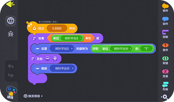 通过搭建积木的趣味方式将“事件”“条件”等语句拼接在一起,实现各种原本难以实现的功能!