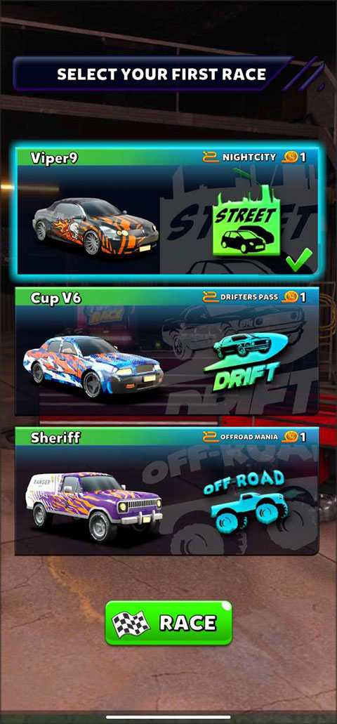 1、下载安装好巅峰疾驰赛道争锋,进入游戏,首先选择一辆你喜欢的车。
