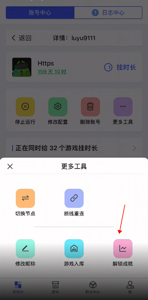 然后就可以进入控制台页面中,在更多工具中点击【解锁成就】