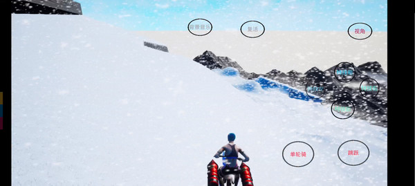 2、屏幕右方有不同的按钮都有中文注释,包括单轮骑、跳跃、往左、往右等等,点击便会做出相对应的动作,