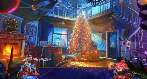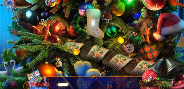 3、点击圣诞树,将藏在里面的礼物找出来,