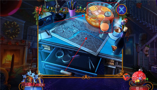 4、点击桌子,取一杯果汁给圣诞夫人,