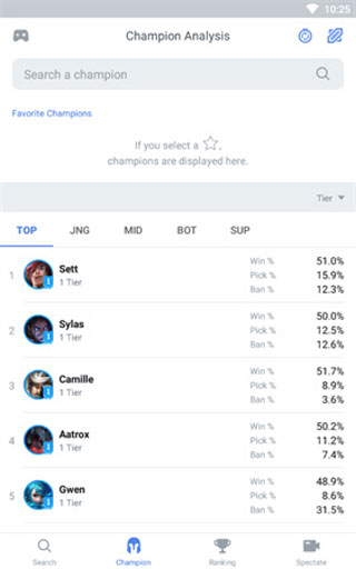 3、获得英雄胜率排名,每一个英雄在比赛中的胜率都可以知晓,了解什么英雄胜率最高,挑选好玩的版本热门英雄体验游戏。