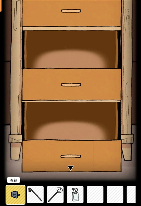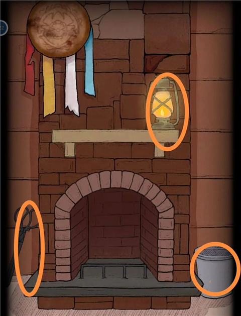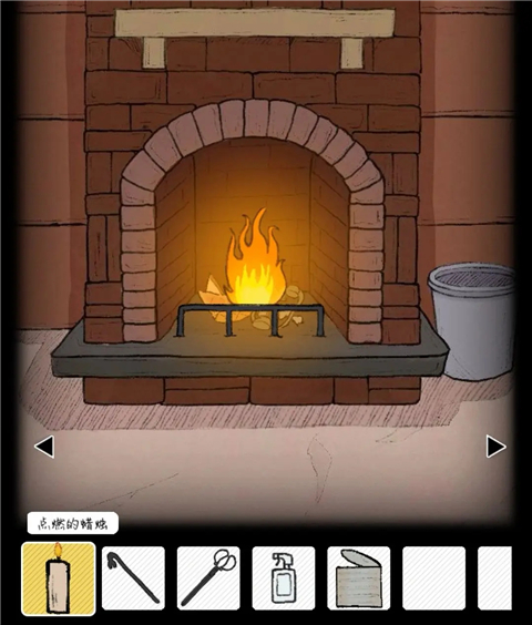 将木雕船扔入烟囱中,后将煤油提灯也扔入其中生火,蜡烛点击火光得到燃烧的蜡烛。将火钳放入火堆,得到床旁边柜子右侧门钥匙,打开得到旋钮。
