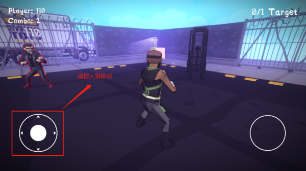 2、即可进入格斗场场地,玩家可以通过操控左侧按钮控制人物移动方向;