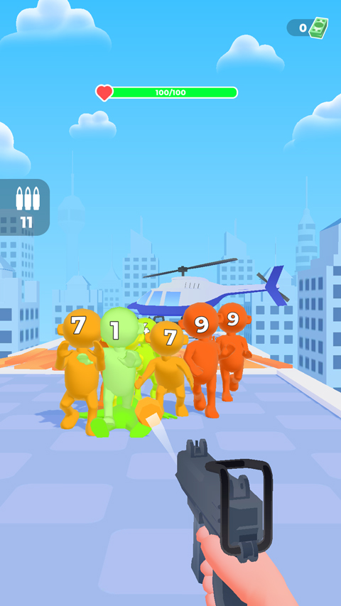 2、进入游戏如图,游戏采用竖屏滑动射击闯关玩法;
