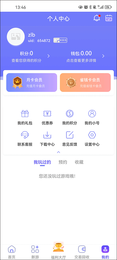 玩家点击我的即可进入个人中心,可以查看自己的账户信息等。