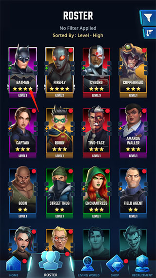 3、收集和训练传说中的DC偶像,如蝙蝠侠、超人、神奇女侠、莱克斯路德、哈莉奎因,并与敌人作战以求生存!