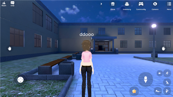 6、之后进入游戏,左下角的按钮控制角色移动,右下角还有实时语音、跳跃、蹦跑等其他功能;