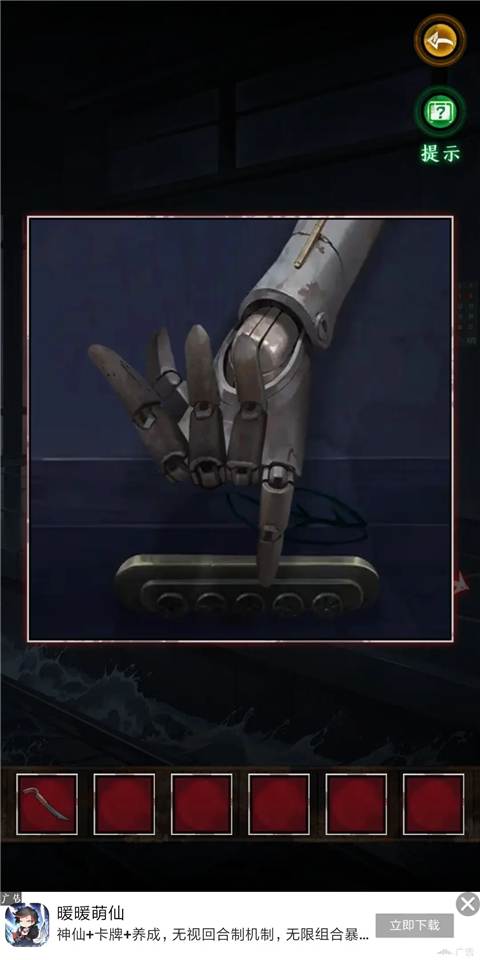 15、得到人偶的手,点击书柜最上一行露出的一张纸得到信息“蝉能让石碎”