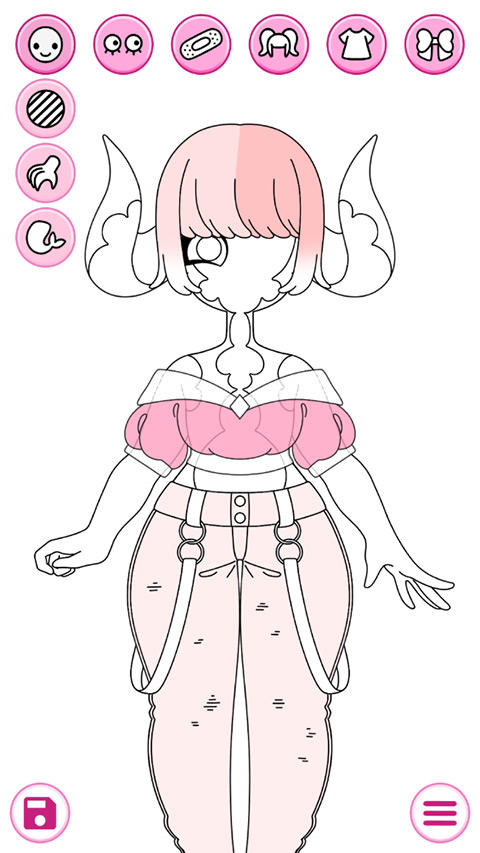 3、你可以对怪物女孩子的身体、脸、服装、首饰、发型等众多方面进行重塑。
