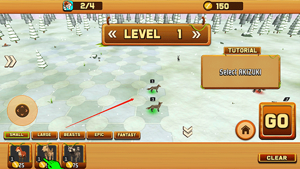 3、进入游戏后,在下方动物种类中选择上阵的动物
