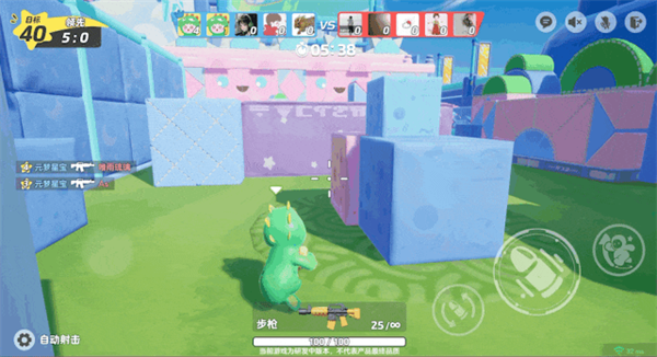 【冲锋竞技】是典型的双阵营5V5团队激战FPS玩法,星宝们可以在出生区域点击"军械库"选择心仪的武器,为尊严,哦不,为了爱与和平而战!