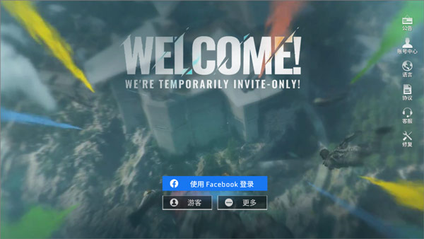 1、玩家打开游戏进入登录页面,输入账号登录或选择游客方式输入邀请码登录;