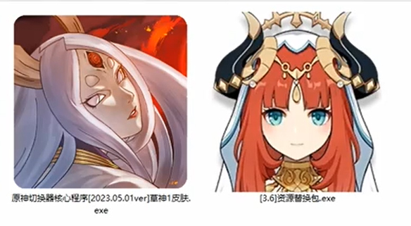 首先先将这些下图中切换器(可以通过各大原神社区进行资源获得),游戏资源包(使用工具正在玩的游戏渠道服中的数据打包好)准备好