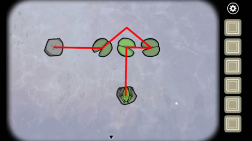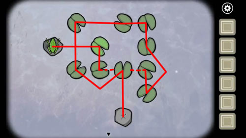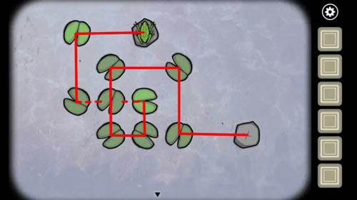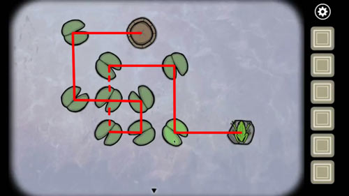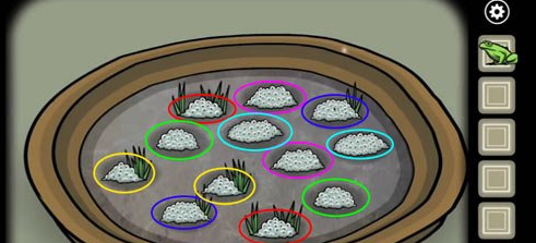 2、进入树林2,调查右侧的水池,将相同形状的物体配对,完成后可以在水里得到第二只青蛙。