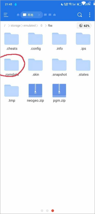 3、将dat文件放到fba/.romdata,游戏自己建一个文件夹放到里面;