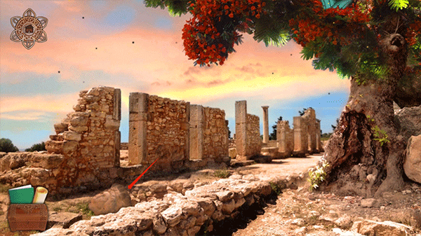 然后玩家们点击最后一道门进入这边的遗迹这里,将石头放置在左边的那堆乱石上面。