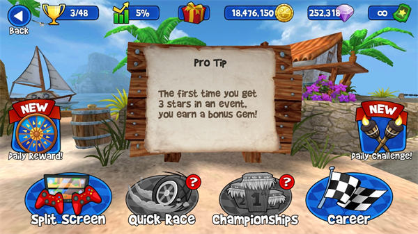使用您的奖金来收集和升级一个装满独特汽车的车库,从怪物卡车到肌肉车再到月球车!