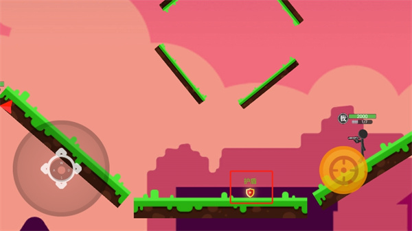 3、左下角的摇杆可以控制射击方向,射击反向移动,点击右下角的按钮即可进行攻击;